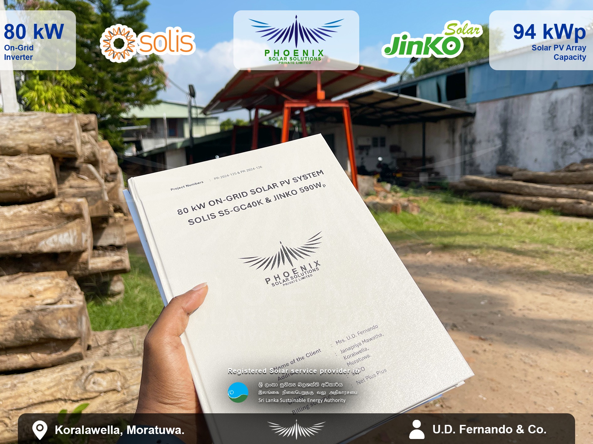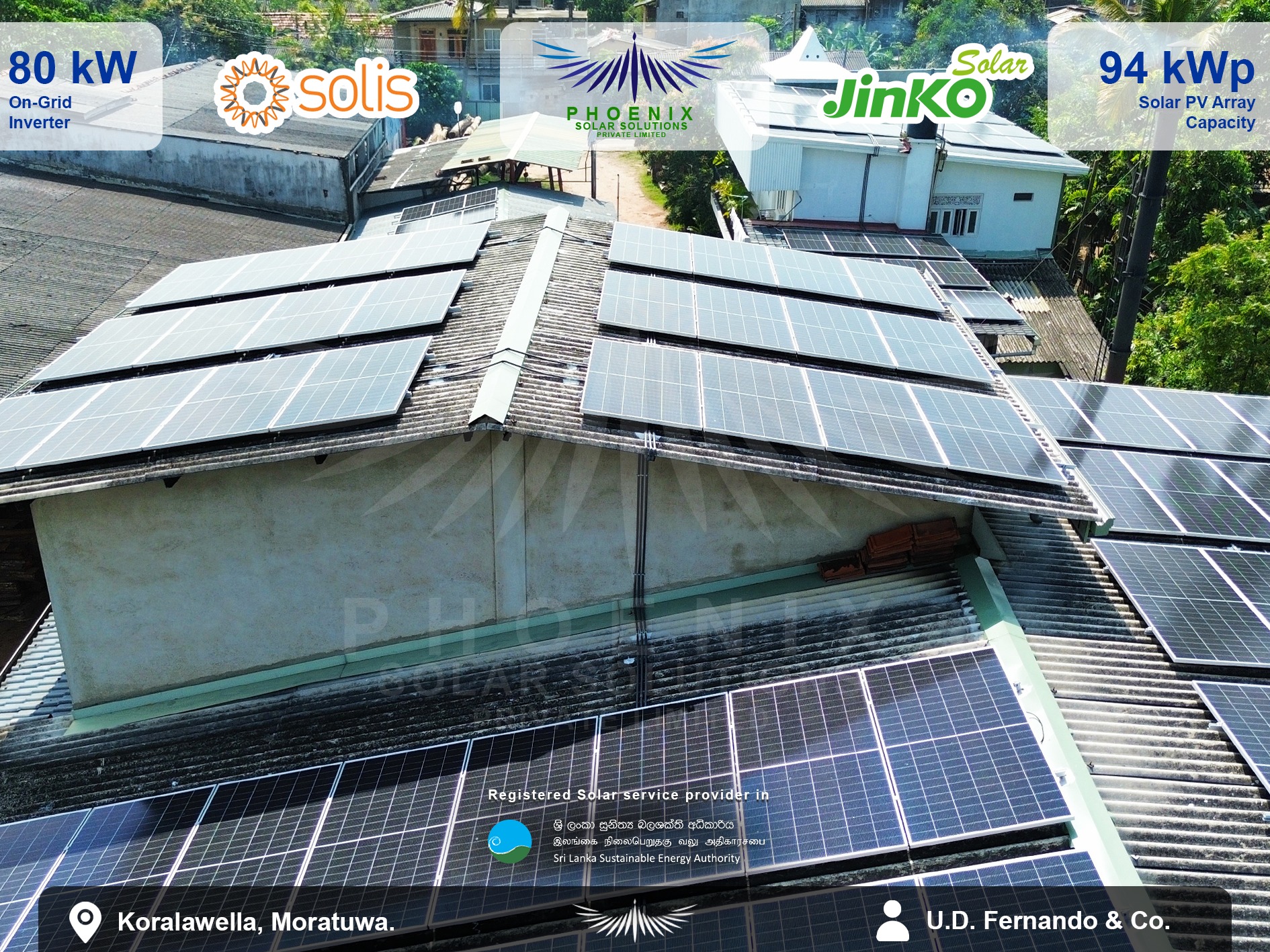 This system consists of two units of 40 kW Solis inverters, forming an overall 80 kW AC system, and is coupled with a 96 kWp solar PV array constructed using Jinko Solar panels. The solar PV array has been intentionally oversized due to its installation across a wide range of roof areas with varying tilt angles. This design approach ensures optimal inverter loading, enabling the system to operate closer to its peak performance for a greater portion of the year and to achieve the targeted annual energy generation. The system is expected to generate more than 9,000 units of electricity per annum and has been installed as an investment project under the Net Plus Extra scheme of the utility provider LECO.